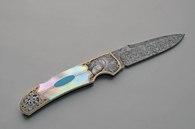 - Custom handles crafted from fossilized bone, mammoth ivory, or exotic hardwoods